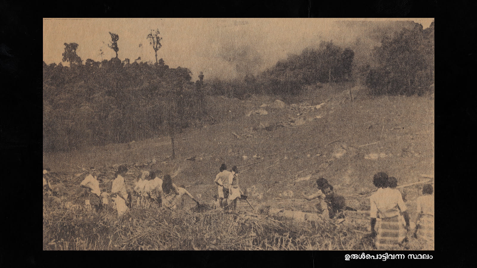 ‘സമയം വൈകുന്നേരം 3 മണിയായി കാണും തോട്ടത്തിലെ ഒരു തൊഴിലാളി എന്നോട് വന്നു പറഞ്ഞു: “മല കീറിയിട്ടുണ്ട്. അതിലൂടെ ഒരു തുറന്നു പിടിച്ച തുണിക്കുട ഒഴുകിവരുന്ന പോലെ എനിക്കു തോന്നി.” “എന്താണെന്ന് നമുക്കൊന്ന് ചെന്നു നോക്കാം.” അങ്ങനെ ഞങ്ങൾ അങ്ങോട്ടേക്ക് ചെന്നു നോക്കുമ്പോഴാണ് മലയാകെ ഒലിച്ചുവരുന്നതായി കണ്ടത്.’ മലയാളം പ്ലാന്റേഷനിലെ തൊഴിലാളിയായ അബൂബക്കർ ആണ് ഇത് പറഞ്ഞത്. അരക്ക് ചാക്ക് ചുറ്റി പൊളിത്തീൻ കവറുകളിൽ മൂടിപ്പുതച്ചു നിൽക്കുന്ന തമിഴത്തികളായ തോട്ടം തൊഴിലാളി സ്ത്രീകൾ, അവരുടെ മണിപ്രവാള ശൈലിയിൽ സംഭവം വിവരിച്ചു തരുന്നുണ്ടായിരുന്നു. മൺപരപ്പിലിറങ്ങി നിൽക്കുന്നത് അപകടമാണെന്ന്. എങ്ങും ആടിയ മണ്ണ് ഒരു ദിക്കിൽ ചവിട്ടിയാൽ വളരെ അകലത്ത് അതിന്റെ പ്രതിഫലനം കാണാം. മണ്ണ് വന്നുകൂടുന്ന സ്ഥലത്തുനിന്ന് ദുർഗന്ധം പുറത്തുവന്നു കഴിഞ്ഞിട്ടുണ്ട്.​