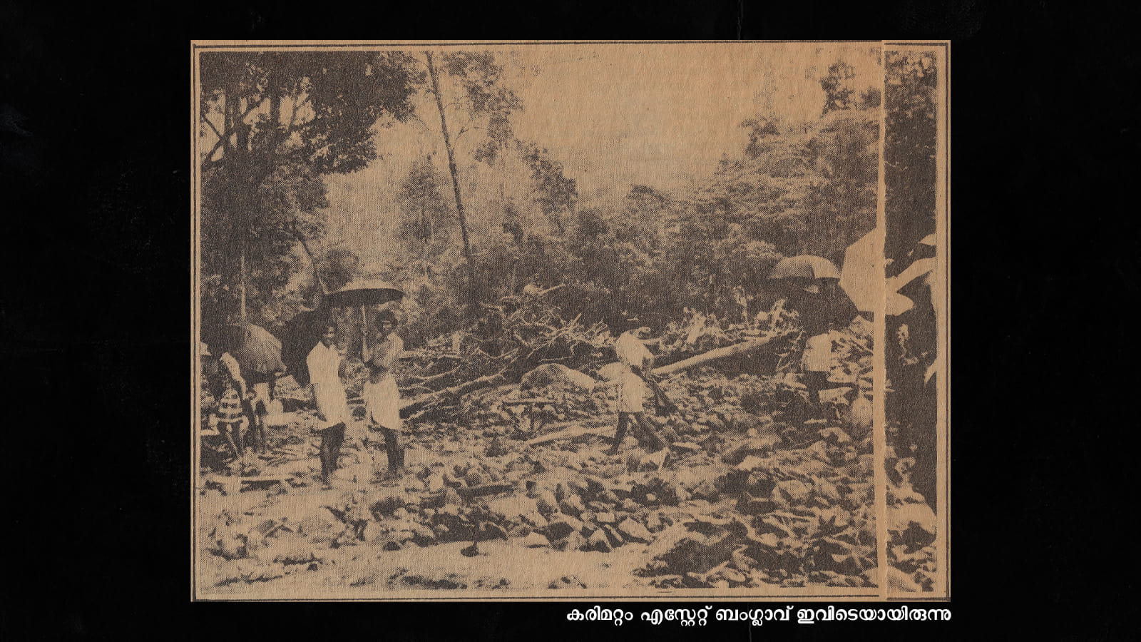 വയനാടൻ കുന്നുകളിലെ ഉരുൾപൊട്ടൽ മൂലം ഉണ്ടായ സംഭ്രമജനകമായ അന്തരീക്ഷം നേരിൽ കാണുന്നതിന് കരിമറ്റത്തെത്തിയ കേരളശബ്ദം സ്ഥലത്തുവച്ച് എ.സി.എം. ബാലകൃഷ്ണൻ, സ്പെഷ്യൽ ഡെപ്യൂട്ടി കലക്ടർ കുഞ്ഞിരാമൻ, വൈത്തിരി റവന്യൂ ഇൻസ്പെക്ടർ ഇ.സി. വേലായുധൻ എന്നിവരെ കണ്ടു. അംബരപാളികളിൽ നിന്ന് പാറിപ്പറന്നുകൊണ്ട് ഉരുൾപൊട്ടൽ മൂലം ഉണ്ടായ നാശനഷ്ടങ്ങളുടെ ഫോട്ടോയെടുക്കാൻ കൊച്ചിയിൽ നിന്ന് എത്തുന്ന നാവികസേനയുടെ ഹെലികോപ്റ്ററും പ്രതീക്ഷിച്ചു നിൽക്കുകയായിരുന്നു. അവർ റവന്യൂ ഇൻസ്പെക്ടർ വേലായുധൻ സംഭവത്തെക്കുറിച്ചുള്ള ഔദ്യോഗിക വിവരണം നൽകാൻ ആരംഭിച്ചു. വെള്ളപ്പൊക്കവും പേമാരിയും നിമിത്തം ദുരിതമനുഭവിക്കുന്നവർക്ക് പകർച്ച നടത്തുന്നതിനും മറ്റുമുള്ള ഏർപ്പാടുകളിൽ ഞാൻ മുഴുകി നിൽക്കുകയായിരുന്നു. അയൽപക്കത്തു നിന്നുള്ള പല വീടുകളിൽ നിന്നും വലിയ ചെമ്പുപാത്രങ്ങൾ സംഭരിച്ചു വച്ചത് ഉണ്ട്. അപ്പോഴാണ് ലൈറ്റ് ഇട്ട ഒരു ജീപ്പ് ഓടിച്ചുകൊണ്ട് ബാബുവേട്ടൻ വരുന്നത്. എന്നെ കണ്ട മാത്രയിൽ ജീപ്പ് നിർത്തി വിവരം പറഞ്ഞു: “ഇന്നലെ അരണിമലയിൽ ഉരുൾപൊട്ടി കരിമറ്റം എസ്റ്റേറ്റും ബംഗ്ലാവും പാടെ ഒലിച്ചുപോയി. മുപ്പതോളം ആളുകൾ മണ്ണിനടിയിൽ കാണാതായി. ഇന്നു കാലത്താണ് വിവരം മേപ്പാടിയിൽ അറിഞ്ഞത്. ഫോൺ വഴി കലക്ടറുമായി ബന്ധപ്പെടാൻ ശ്രമിച്ചെങ്കിലും സാധിച്ചില്ല. പോലീസിൽ വിവരമറിയിച്ച് വയർലെസ് വഴി കലക്ടറെ ബന്ധപ്പെടാൻ ശ്രമിച്ചു; അതും ഫലിച്ചില്ല. അങ്ങനെയാണ് ജീപ്പും എടുത്ത് പുറപ്പെട്ടത്.”