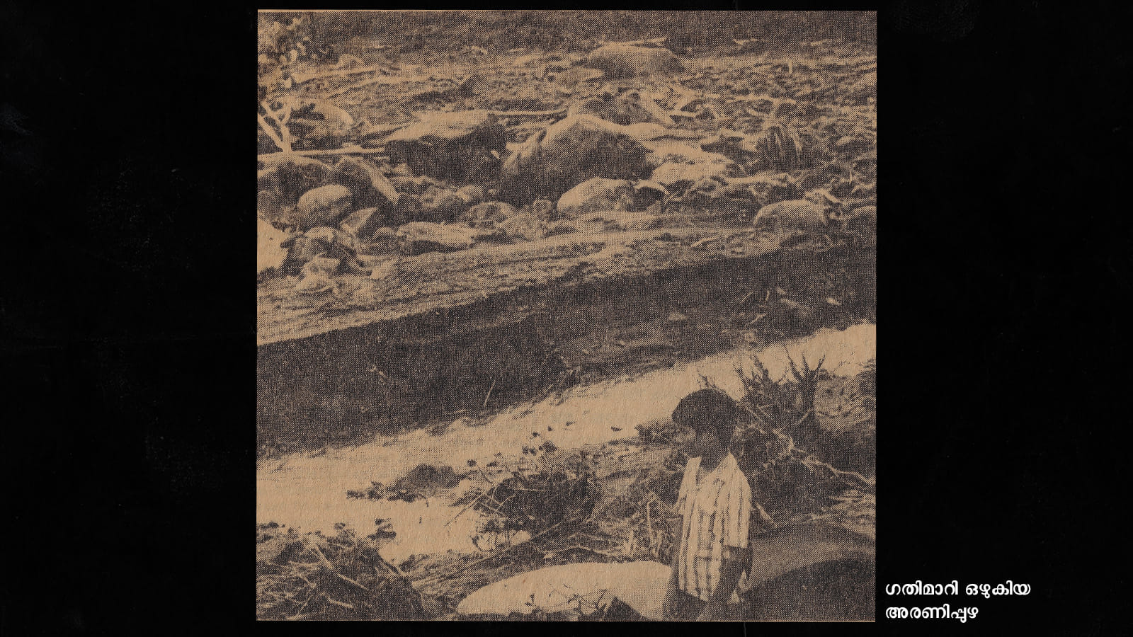 മാമരങ്ങളും പാറക്കൂട്ടവും മൺകൂമ്പാരവും എല്ലാം അമ്പരചുംബിയായ കുന്നിൽ നിന്നും മലവെള്ളപ്പാച്ചിലൊടൊപ്പം താഴെക്കൊഴുകാൻ തുടങ്ങി. പത്തൊമ്പതാം പുഴ എന്ന അരണിപ്പുഴ തൂർന്ന് ഗതിമാറി ഒഴുകി, എല്ലാ ആസ്പദങ്ങളും വിട്ട്, അന്തം വിട്ടുപോകുന്ന പോക്കിൽ വഴിയിൽ കണ്ട സർവതിനെയും തട്ടിത്തകർത്തുകൊണ്ടായിരുന്നു പാറക്കൂട്ടങ്ങളും മാമരങ്ങളും മണ്ണിലെ കൂമ്പാരവും താഴോട്ട് ഒലിച്ചു പോന്നിരുന്നത്. കരിമറ്റം എസ്റ്റേറ്റ് ആകെ ഒലിച്ചുപോയി. ബംഗ്ലാവിന്റെ ഉള്ളിൽ ഉണ്ടായിരുന്ന മൂന്ന് ആത്മാക്കളും, ഒഴുകിത്താണുപോയവരുടെ കൂട്ടത്തിൽപ്പെട്ടു. മാല നിരങ്ങിവന്ന ദിക്കിൽ മറ്റു വീടുകളോ കെട്ടിടങ്ങളോ ഉണ്ടായിരുന്നില്ല. എസ്റ്റേറ്റിൽ നിന്നും താഴ് വാരത്തായി പാറപ്പൊത്തിൽ കഴിഞ്ഞുവന്നിരുന്ന ഒരു ആദിവാസി കുടുംബം ഉണ്ടായിരുന്നു. സ്ഥിരതാമസക്കാർ ആയിരുന്നു എന്ന് പറഞ്ഞു കൂടാ; നിലമ്പൂർ കാടുകളിൽ നിന്നോ മറ്റോ വനവിഭവങ്ങൾ തേടി എത്തിയവരായിരുന്നു. അവരിൽ 11 പേരുണ്ടായിരുന്നു എന്നാണ് അറിവ്. അവരുടെ താവളവും മണ്ണിനുള്ളിൽ അകപ്പെട്ടു.